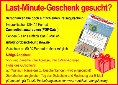 Für Gutscheinbestellungen können Sie auch hier klicken: Online-Anfragen Viele Grüße Ihr Team von www.norddeich-bungalow.de